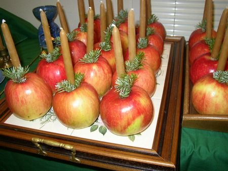 天使は、先生から火の灯った林檎蝋燭(林檎の芯をくりぬいて蝋燭を立てたもの)を受け取り、
