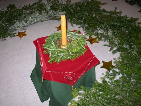 渦巻きの中心に小さなテーブルがあり、そこに長い蝋燭が1本立ててある。