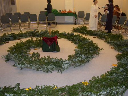 床には、本物の樅の木の枝が渦巻き状に敷いてある。