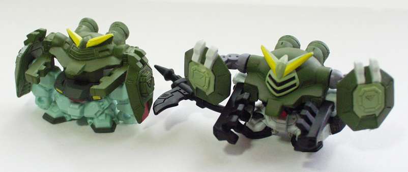前作SDFCとカスタムとの比較(MS形態) 左<カスタム10> 右<ステージ42> 武器の大きさはgoodなのだが・・・。