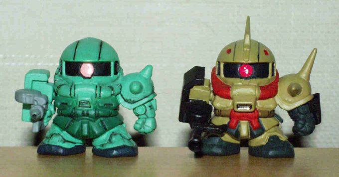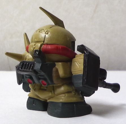 ★ザクデザートタイプ★ べース:ステージ17の量産型ザクU 1.頭部アンテナ(MSVキットを流用) 2.頭部バルカン砲の設置(ピンバイスで穴開け) 3.右シールドの形状(ジャンクパーツ) 4.マシンガンの形状 ・先端はWAVE製のバーニアー ・砲身はガンダム又はジムのビームサーベル ・マガジンラックを中央に移動 握り棒は横へ移動 5.排気ダクト(WAVE製のバーニアー) 6.左肩のスパイク (MSセレクションのマラサイ) 7.左腕のシールド (MSセレクションのゲルググキャノン) 8.腰にある二股の赤いもの(ジャンクパーツ) 9.左腰部(側面)のクラッカーポッド 10.背部の放熱ダクト(ジャンクパーツ) |