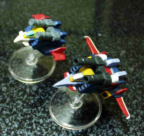 右:MAセレクション2のGアーマーに 付属していたコアファイターとステ ージ19のガンダムステージ25の Gファイターを改造したGスカイ 左:ステージ31のGスカイ |