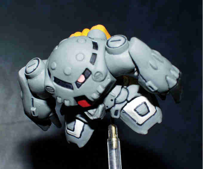 カラーリングはズゴックE専用カラーを用いています。 スタンドパーツなしでも自立いたします。 最近のSDFCでは水陸両用機が乏しいような。。。 幻のMSアッグシリーズがSDFCになって欲しいです。 |