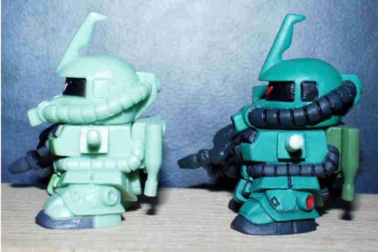 ベース:写真左ステージ51のザクF2 改造個所:彩色の変更 と。。。 |