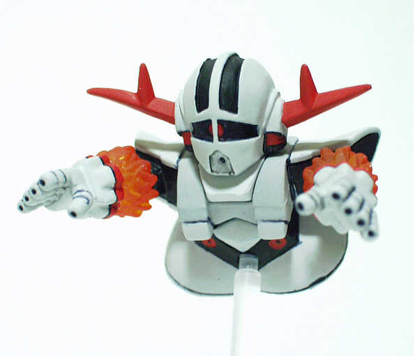 ベース:写真左ステージ61のジオング 改造個所はありません。 カラー変更のみです。 塗装 ・頭部、肩部、スカート ホワイト4号90%+フラットブラック10% ・胸部 グレー14号90%+フラットブラック10% |