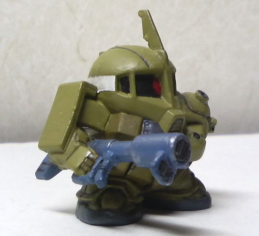 機動戦士ガンダム第08MS小隊「第8話 軍務 と理想」に登場するTOP専用のザクT OVAではザクマシンガンですが、隊長機という ことでバズーカーにしました。改造しやすかった 事もありますが・・・。 ボディカラーやモノアイはできるだけOVAに近い ものとした。 |