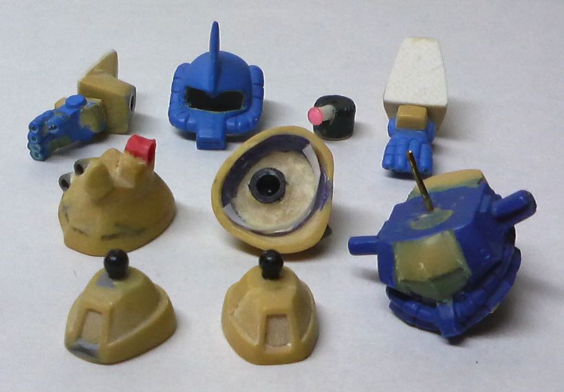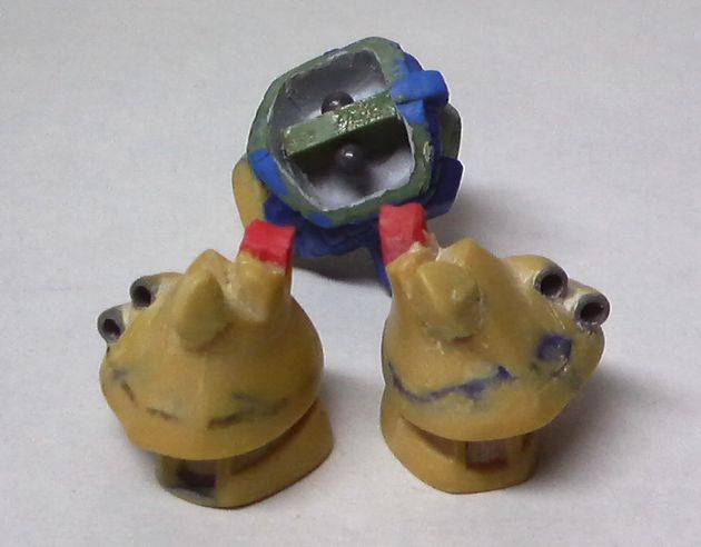 ●脚部と胴体とモノアイパーツの組み立て 胸のコックピット付近の設定どおりに形状変更 |