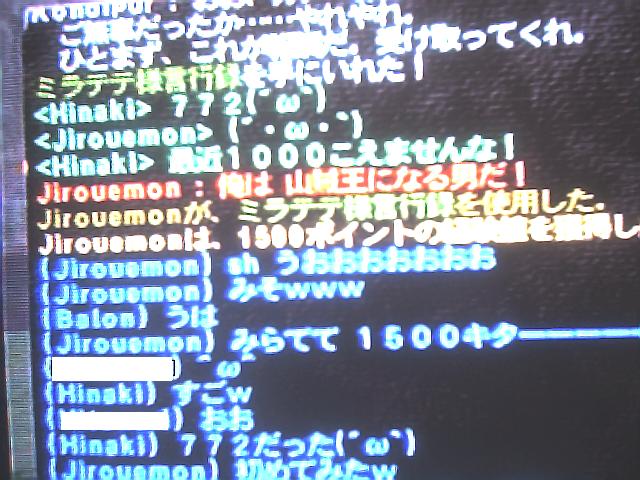 Jirouemon > 回線確保で即帰還w常駐とはいかないけどね。 (06/01/24 11:11)