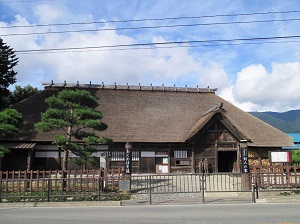 この区間は短くて、ほどなく旧道を抜けると、封人の家が目の前に現れる。