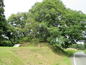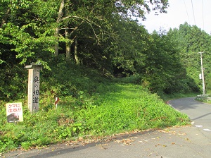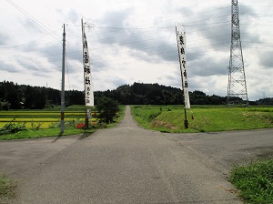 長く緩やかな上り坂が続く県道を3kmほど行くと、天王寺一里塚に至る。岩出山地内で一里塚が築かれたところは、堂の沢、赤新田と天王寺だが、現存するのはこの天王寺一里塚のみである。
