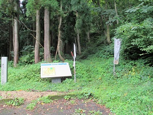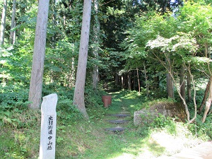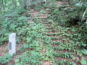 その横から急勾配の尿前坂を上っていくが、上り口には「出羽街道中山越」の道標や説明板が立っており、いよいよ中山越の難所が始まることを示している。
