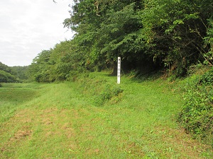 苅又一里塚から先の道は、標識も何もなく、どこをどう歩いているのか、先がどうなっているのかも分からず、少し不安を抱きながらも、ひたすら道なりに前進して行く。事前に調べた国土地理院の地図では、岩手と宮城の県境に沿っている道ではないかと思われるが、確証はない。1kmほど行くと、一関カントリークラブのコースが見えるところに至り、その先の道は鉄の扉で遮られていて先に進めなくなっている。たまたま、近くにいた作業員の方に扉を開けていただき、フロントに電話でコース内の通過をお願いしてなんとか事なきを得たが、ここは古道がゴルフ場の敷地内を通るようになってしまっているのである。奥の細道を辿って歩く人は、たいがい同じ目にあってしまうようだ。