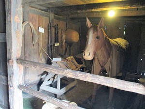 家の中に一歩足を踏み入れると、右手にいきなり馬の顔が現れて少しびっくりするが、よく見るとよくできた張り子の馬であった。