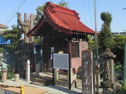 ここで長後街道をいったん横切り、神明社に立ち寄る。神明社のところに立つ蚕御霊神塔は、霜で桑が枯れたために大量に死なせてしまった蚕を慰霊するというもの。