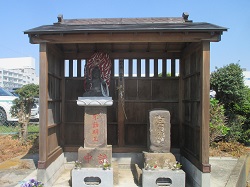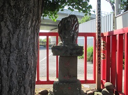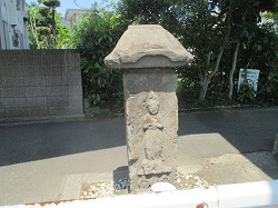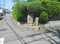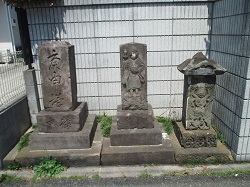 高鎌橋を渡って長後街道を進み、すぐの路地を左に入った丁字路のところに如意輪観音と庚申道標が並んでいる。庚申道標はかなり風化してよく読めないが、文政年間(1818~30)製で、正面に「大山」、右面に「庚申塔」、左面に「ふし沢」と刻まれている。