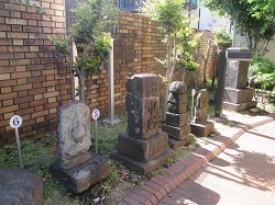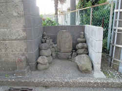 長後市民センター駐車場を囲んでいる生垣に隠れた場所に、この地区に多数残されていた石仏・石塔などが集められている。道標を兼ねた庚申塔には「左かしを道」「右ふし沢道」と書かれたものや「西大山みち、東かしをみち」「南ふち澤道」のものなどがある。