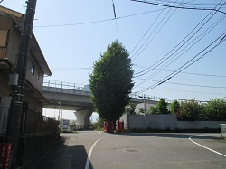 JR相模線の踏切を渡り永池川を越えてしばらく行くと銀杏の大木が見えてくる。