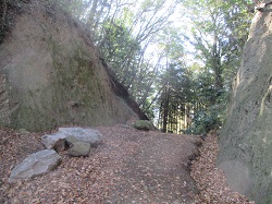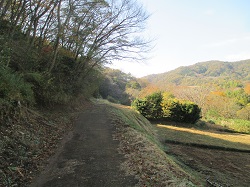 この先も、雑木林の木漏れ日の中を歩いたり、みかん畑の横を歩いたりと、なかなか気持ち良い旧道歩きとなる。ただし、「クマ出没注意」の看板が随所に立てられているので、熊よけのベルを鳴らして一応用心しながら歩く。