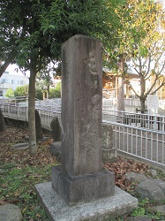 かつてこの交差点にあった大きな追分道標が、今は交差点を右へ行った稲荷神社横に移設されている。寛政8年建立の道標で、正面「左 小田原 い々すミ 道」、右側面「右 ふじ山 さい志やうじ道
