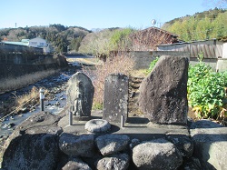 深沢城址を出て街道に戻ってしばらく進んで行くと、家並みがまばらなところでは、街道わきのところどころに石仏や石塔が置かれている。