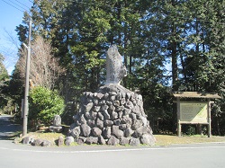 千束橋の先、階段下の参道入口に石塔が並ぶ常唱院前を通って行くと、小山町足柄支所入口に大きな竹之下古戦場碑が建てられている。