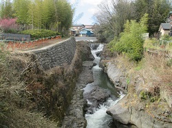 再び県道に合流し、20分ほど歩いたところで左の旧道に入ると黄瀬川に架かる高橋を渡り、神山小学校前に出る。橋から下を覗くと、横瀬川はこの辺りでは深い淵になっており、まるで深山幽谷のような景色が広がっている。