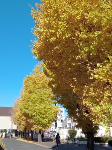 駅前の銀杏。真っ青な空に映える 2022.12.16