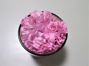 花々が次々と咲く季節だが、コロナのせいで出歩くのもままならず、強風で散った八重桜の花をグラスに浮かべてみたり