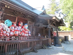 達磨寺は縁起だるま発祥の寺としてよく知られている。かつて中山道歩き旅の際立ち寄った時は、牌楼式(はいろうしき)の総門から真っ直ぐ見上げる石段に気後れし、門前で踵を返して八幡八幡宮の方に歩を進めていた。今回は石段を上り、洗心亭、観音堂、霊符堂(本堂)など境内を一通り巡った。