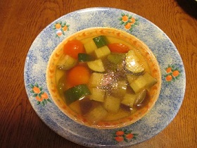 暑い日に、野菜たっぷりの冷たいスープは最高。