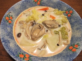牡蠣の旨味と白菜の旨味がたっぷりのミルクスープ。