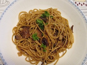 乾燥ポルチーニを使ったクリームパスタ。