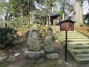 本堂に向かって右手の観音堂の入り口のところには酒田の不玉、安田似哉坊の句碑とともに芭蕉句碑が建っている。