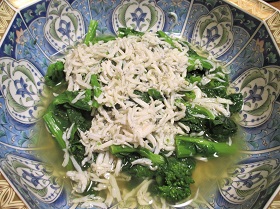 2 鍋に水150ccを入れて沸かし、白だしを加えて煮立ててから1のほうれん草としらすを加えてひと煮立ちさせたら出来上がり。