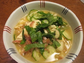 8 器にご飯をよそい、7をかけ、きゅうり、みょうが、大葉をたっぷりのせたら出来上がり。
