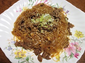 牛肉のうまみがじっくりしみ込んでピリ辛の春雨は箸が止まらない。