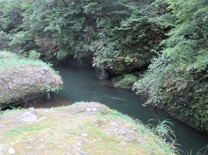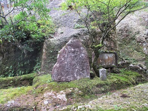 道明と呼ぶ人物が淵に居着いた蛟竜(こうりゅう)を懲らしめたという伝説に由来するとのこと。芭蕉は滞在中何度かここを訪れており、「奥の細道の風景地」の一つに選ばれ、国指定名勝地になっている。そこには、文久元年(1861)銘の句碑が建っている。