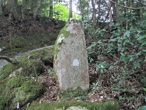 やがて嫁威(よめおどし)の道路標識が現れた。ここから少し先に小さな八幡神社があり、ここに嫁おどし谷の説明板が立っていた。今はまったく往時の面影はないが、かつては昼なお暗い藪陰の道だったという。