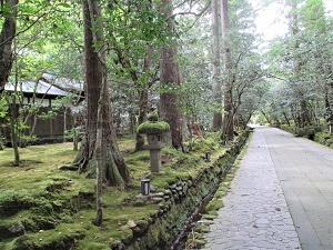 山門をくぐると、歴史を感じる苔むした参道がまっすぐに延びていて、凛とした雰囲気に包まれる。