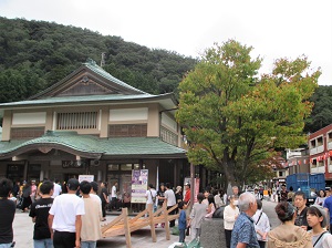 ぶらぶらと歩いてゆくと、昔からの総湯(共同湯)・菊の湯のところにでた。山中座と菊の湯に挟まれたところが広場となっており、ここが祭の中心会場となっている。