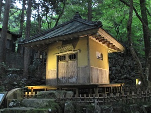 あやとり橋から渓谷沿いの遊歩道を下流に少し行くと黒谷橋の下に出る。そこには、明治43年に芭蕉を慕う全国の俳人たちによって建てられた芭蕉堂が建っている。