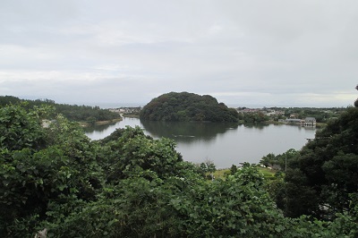 御坊跡のある御山からは、北潟湖と鹿島の森が見える。