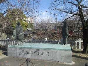 正覚寺を出て、通りの左側を歩いてゆくとまもなく「奥の細道むすびの地」に至る。