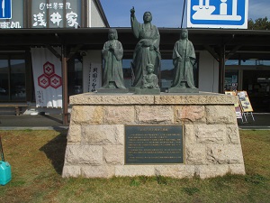 しばらくすると、道の駅・浅井三姉妹の郷に至る。この近くには、浅井歴史民俗資料館他、浅井地区の公共施設がいくつも集まっている。戦国の世を数奇な運命の中生きた浅井家三姉妹の名をとった道の駅に立ち寄り、名物の鯖寿司で小腹を満たしてしばし休憩。
