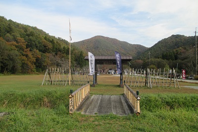 少し行くと、国道に架かる野村橋手前で少し上流に姉川古戦場跡の大きな看板が見える。そちらに行くと、現在は車両通行禁止となっている旧野村橋の北詰に姉川古戦場跡碑や説明板などが建てられており、周囲には広大な古戦場跡が広がっている。