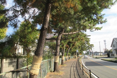 美濃路に入ってしばらくすると松並木が現れ、昔の街道の面影を残している。松並木が残っている街道を歩くときは、不思議と気分が乗ってくる。