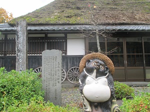孫兵衛茶屋に着くころには、それまでの雨もやみ、時折青空が見えるようになってやれやれと思ったのも束の間、肝心の孫兵衛茶屋はなんと定休日となっていた。結局、素龍本を見物できなかったばかりか、温かい蕎麦を食べることもできなかった。仕方なく、店先のベンチで念のため用意していたおにぎりをさみしく食べることに相成る。今日は、どうもついてない・・・。