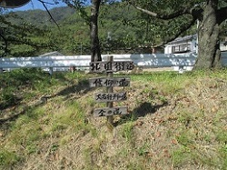 生塚(うぶつか)信号を左折して国道18号に入り、すぐに右斜め前の道を入って行くと、右手に正福寺がある。その先すぐ右手に屋根で覆われた杉の切り株があり、「秋和杉並木の歴史」と記された案内板がある。真田昌幸が秋和村の北国街道沿いに267本の杉並木を植えたと伝えられているものだが、今はこの切り株しか残っていない。