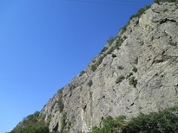 坂木宿の枡形のところに善光寺常夜燈が立ち、そこをすぎると旧北国街道横吹道跡の説明がでている。この先山腹の断崖を旧北国街道が通じていたが、危険な細道で北国街道最大の難所だったらしい。明治10年に千曲川沿いに横吹新道が開通しており、しなの鉄道のガードをくぐった先から、千曲川と岩山に挟まれた新道(国道)を歩く。
