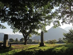 岩鼻というところで、これまで街道北側にずっと続いていた虚空蔵山の稜線が大きく切れ落ちる。